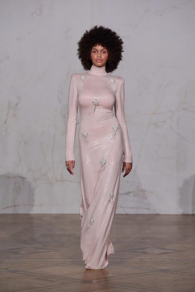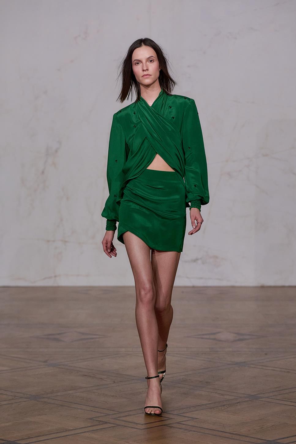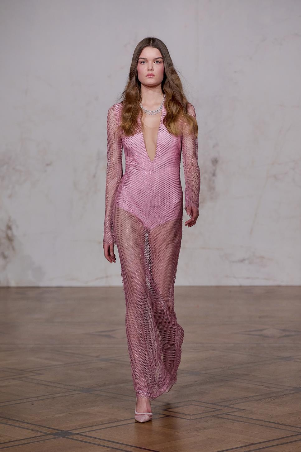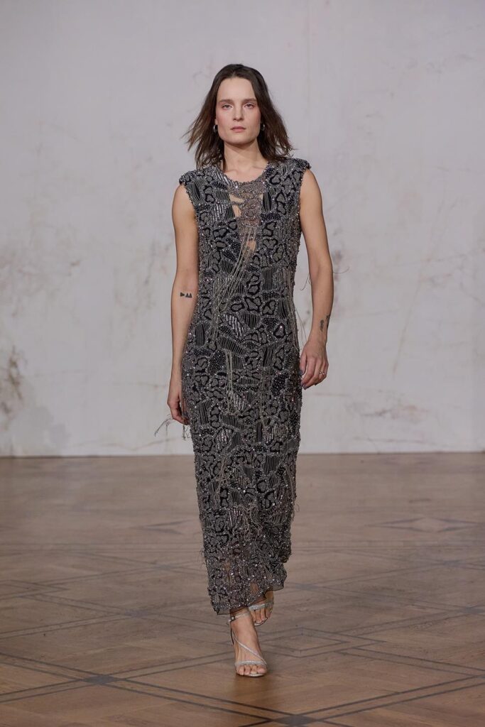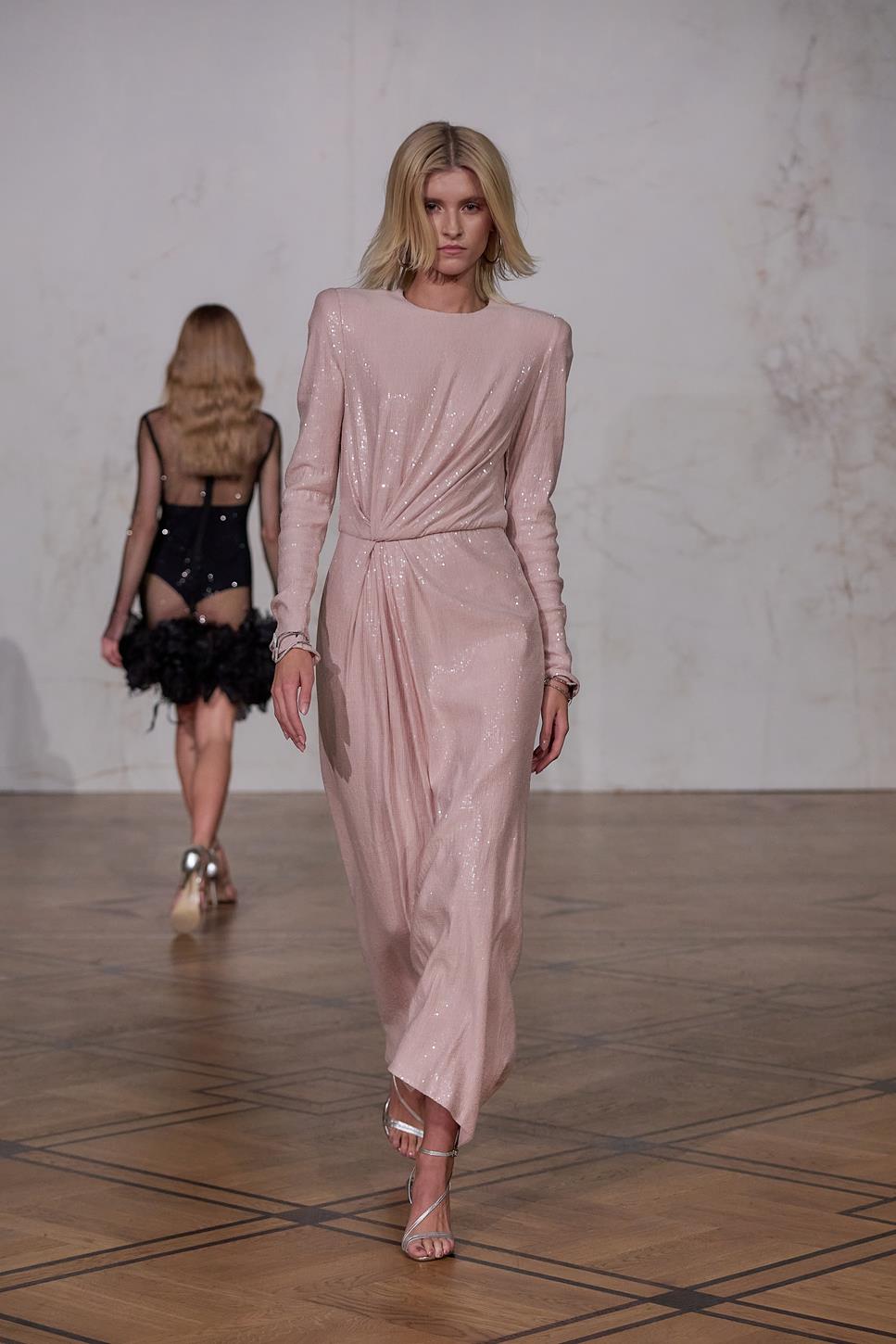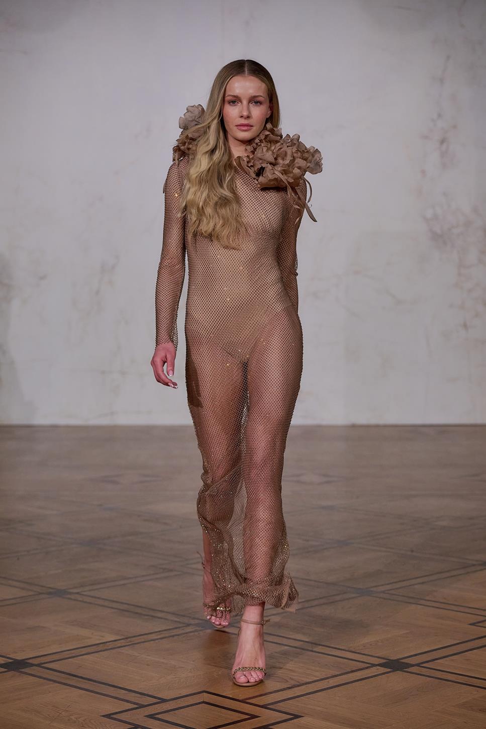 Maciej Zień troszczy się o szczegół, który ma zachwycać – zarówno użytkownika, jak i obserwatora! Pierwszym lookiem pokaz otwiera wieloletnia muza i przyjaciółka Artysty- Aneta Kręglicka, która ma na sobie suknię z drapowaną górą i bogato zdobioną spódnicą. Lookiem wyróżniającym się w kolekcji była długa sukienka zaprojektowana z „prawie naukową konstrukcją” i z geometrycznymi, ręcznie wykonanymi kwiatami 3D, chirurgicznie wyciętymi i złożonymi z maleńkich kawałków jedwabiu. Projektant oddaje hołd rękodziełu poprzez ręcznie naszywane kryształy na siatce oraz na garniturach i spajające kolekcję trójwymiarowe aplikacje kwiatowe, ręcznie haftowane koronki i charakterystyczne jedwabne frędzle. Nie brakuje tu też oryginalnych dodatków: toreb z kwiatami i frędzlami czy botków z kropkowanej siatki. Kolejny look szczególnie skupiający uwagę to wysadzany kryształami Swarovskiego czarny garnitur. Na wybiegu pojawia się także przyjaciółka Macieja Sandra Girbal ubrana w bogato zdobioną różową mini wraz ze swoją córeczką Zoe – najmłodszą przedstawicielką płci żeńskiej jaka kiedykolwiek brała udział w pokazie, która również miała sukienkę wysadzaną kryształami z koronkowymi elementami. Dopełnieniem kolekcji i uwypukleniem nie tylko piękna natury, ale też kunsztu z natury dbającego o piękno kobiet projektanta jest suknia ślubna.