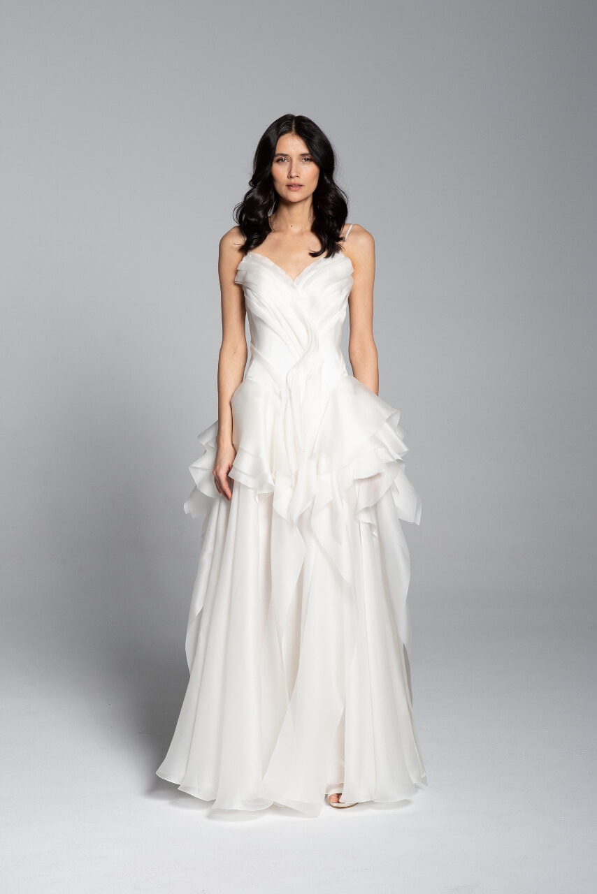 Suknie Boho to modele zwiewne, romantyczne i niezwykle kobiece. Doskonale prezentują się podczas ceremonii odbywających się w rustykalnej przestrzeni lub pod gołym niebem. Są lekkie i delikatnie powiewają w drodze do ołtarza, a następnie podczas pierwszego tańca i zabawy do białego rana. To bardzo praktyczne modele – w wielu przypadkach posiadają długie rękawy, dzięki czemu można używać ich podczas zabawy na zewnątrz. Dla Pań ceniących klasykę i minimalizm Maciej Zień przygotował linie sukien ślubnych Klasyka i Z koronką, do których należą takie modele jak między innymi suknia Lyric, Smergala, Garce oraz Novel. Sukienki wyróżniają subtelne elementy ozdobne, prostota wykonania i ponadczasowość. Atuty sukienek do pięknie podkreślona talia i elegancko wyeksponowany dekolt. Ślub to także wyjątkowa okazja, podczas której wiele Pań marzy o założeniu kreacji rzucającej się w oczy lub niezwykle zmysłowej. Dla klientek chcących postawić na stylizacje wyszukane, modowe lub niezwykle kobiece przygotowaliśmy linie Księżniczka, Syrenka i Glamour. To często odważne propozycje – doskonałym przykładem jednej z nich jest Siren, sukienka pięknie eksponująca dekolt oraz niepowtarzalny model Iris.