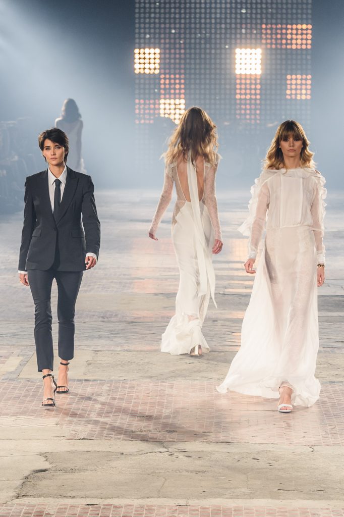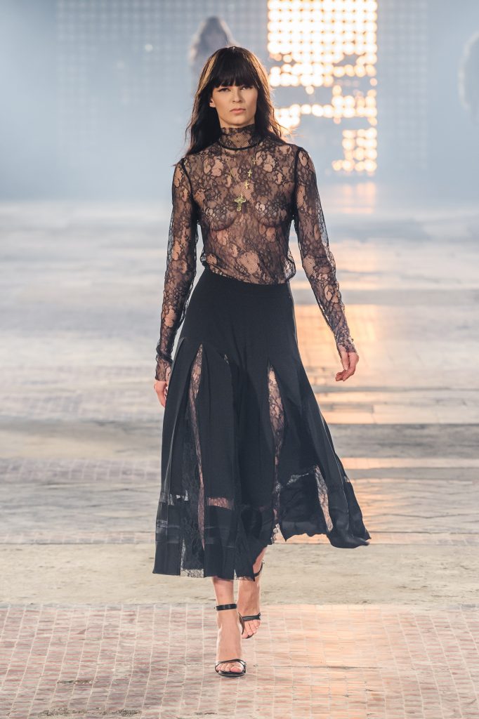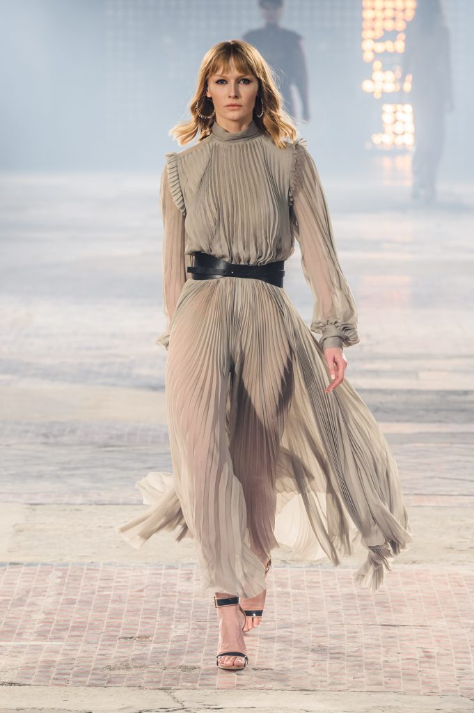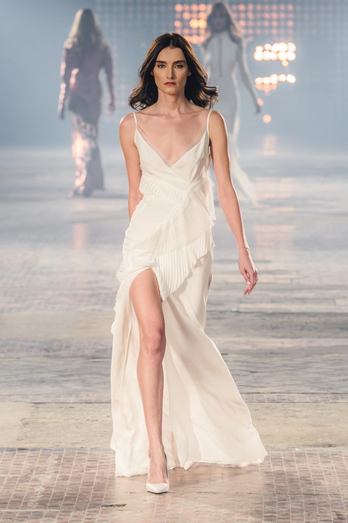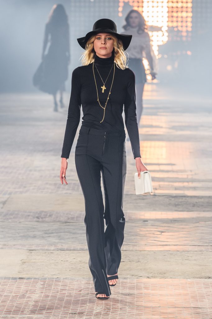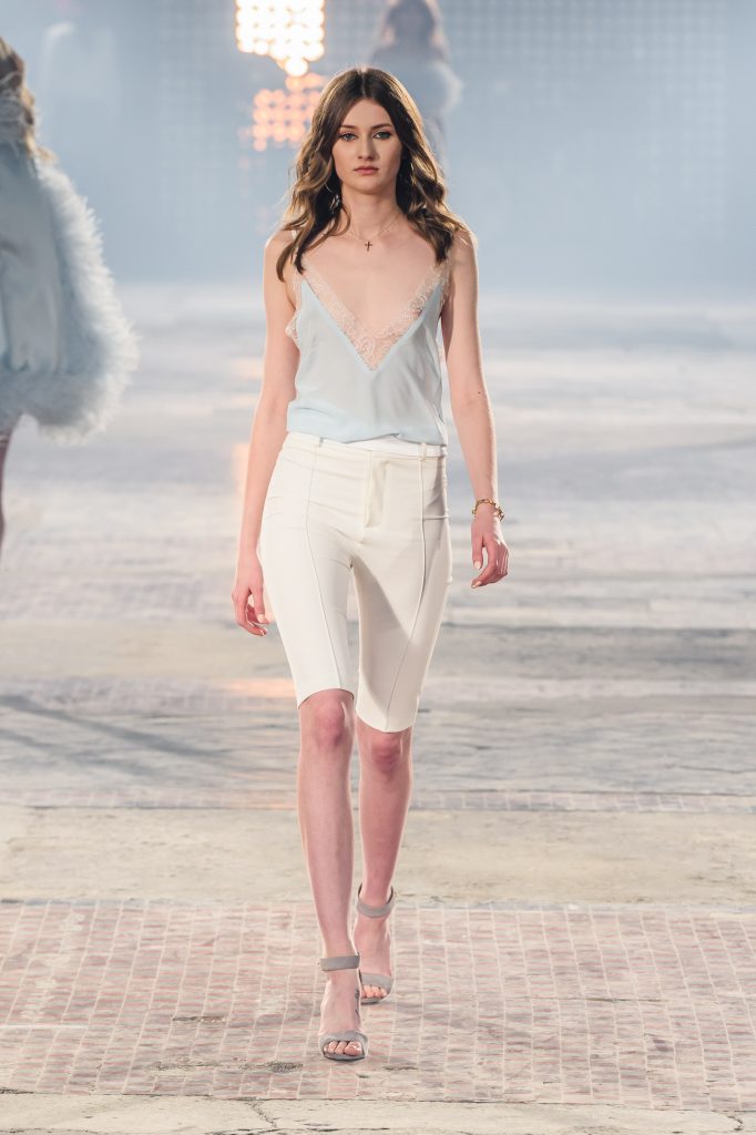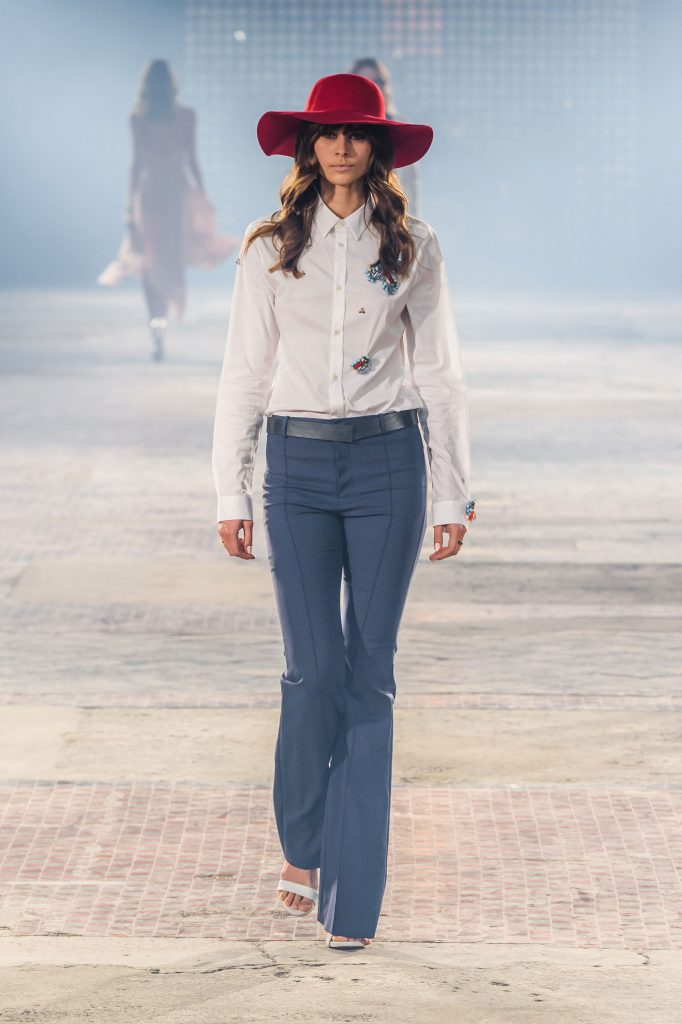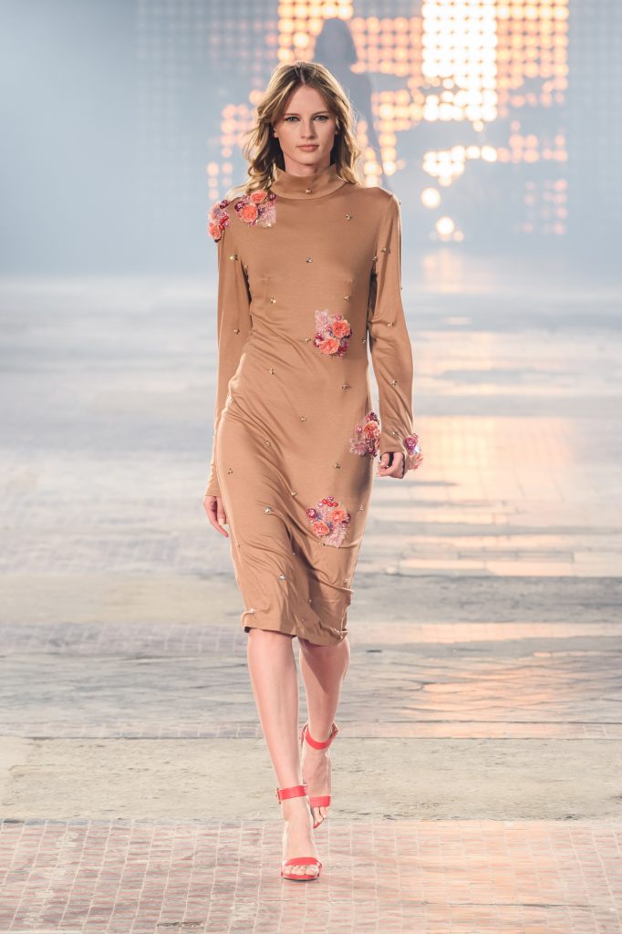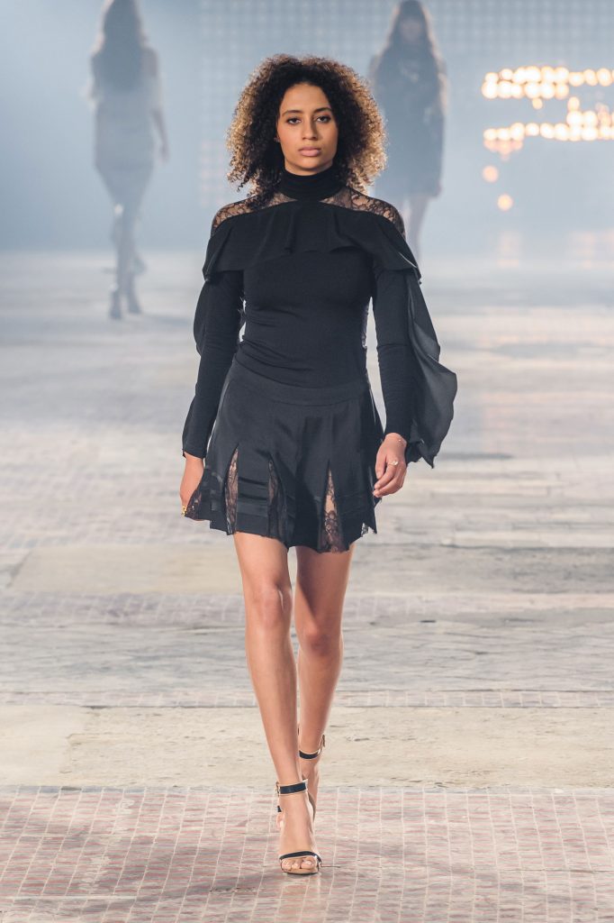 Zaprezentowana kolekcja to przede wszystkim szlachetne tkaniny, takie jak muślin czy jedwab. Wśród sylwetek dominują koronki, które wykorzystane zostały również jako zmysłowe detale oraz plisy charakterystyczne dla lat 70. i printy, takie jak wzór monstery czy krokodyla. Zaskakującym elementem kolekcji są pióra, które stanowią interpretację modnych w tamtych czasach futer.